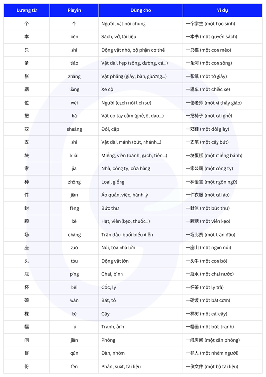 50+ Lượng Từ Tiếng Trung Cơ Bản Quan Trọng Nhất Và Cách Sử Dụng Chuẩn Nhất 2026