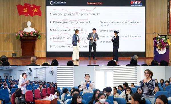 Một thông điệp nhận được sự quan tâm đặc biệt từ sinh viên là chia sẻ của các diễn giả đến từ Oxford University Press: trở thành người giao tiếp hiệu quả quan trọng hơn việc trở thành người giao tiếp hoàn hảo. Theo đó, sự chuẩn bị kỹ lưỡng, thái độ học tập tích cực cùng khả năng truyền đạt ý tưởng rõ ràng, phù hợp ngữ cảnh chính là chìa khóa giúp sinh viên tự tin sử dụng tiếng Anh trong học tập, thi cử và giao tiếp hằng ngày.