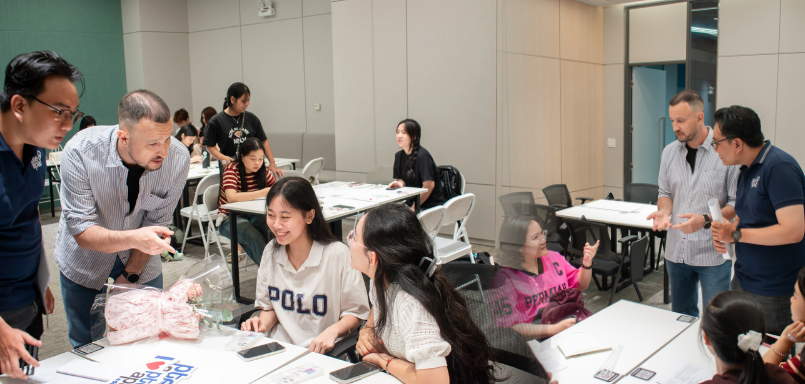 Trong buổi ngày 13/9/2025, người tham gia đã tự tay thiết kế và làm ốp điện thoại (phone case) handmade – từ chọn chất liệu, trang trí đến hoàn thiện sản phẩm mang dấu ấn cá nhân. Trong suốt quá trình, giáo viên bản ngữ dẫn dắt bằng cách giới thiệu từ vựng liên quan (colors, patterns, materials, personalization, creativity…), đặt câu hỏi mở để mọi người chia sẻ ý tưởng, lý do chọn thiết kế, hoặc cách làm quà tặng ý nghĩa. Các nhóm nhỏ thảo luận sôi nổi, trao đổi ý tưởng, đồng thời nhận được sự hỗ trợ kịp thời: chỉnh phát âm, gợi mở cách diễn đạt tự nhiên và sửa lỗi nhẹ nhàng ngay tại chỗ.