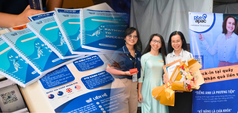 Không chỉ dừng ở việc nhận quà, gian hàng còn là nơi kết nối thực sự. Các bạn sinh viên thoải mái hỏi han về lộ trình học tiếng Anh thực tế, cách luyện thi chứng chỉ quốc tế như PTE, OTE, IELTS, hay cách dùng ngôn ngữ để tăng lợi thế khi xin việc trong môi trường đa quốc gia. Đội ngũ PTE APAC tận tình tư vấn từng người, giải đáp thắc mắc từ “học tiếng Anh giao tiếp có khó không” đến “làm sao để tự tin thuyết trình bằng tiếng Anh trong công việc”. Nhiều bạn chia sẻ ngay tại chỗ: “Vui quá, vừa chơi game nhận quà, vừa được tư vấn lộ trình học miễn phí – đúng kiểu ngày hội ý nghĩa! Mình sẽ đăng ký học thử ngay đây.”