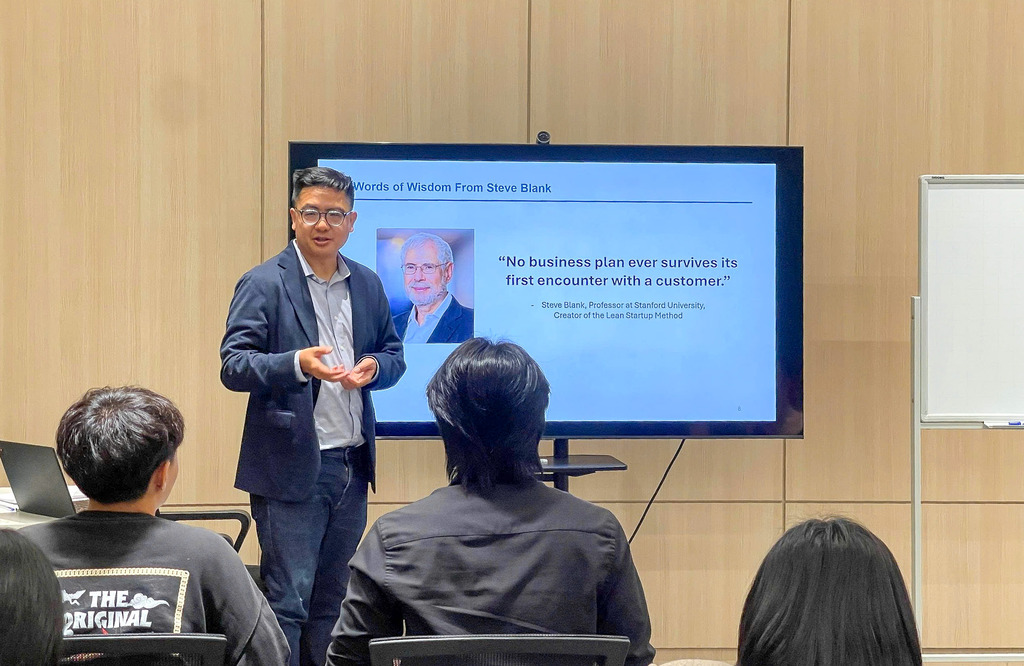 Ông Brian Lee đang hướng dẫn và phản hồi trực tiếp các ý tưởng khởi nghiệp của người tham dự trong workshop “Startup Canvas with Brian” tại PTE APAC Education.